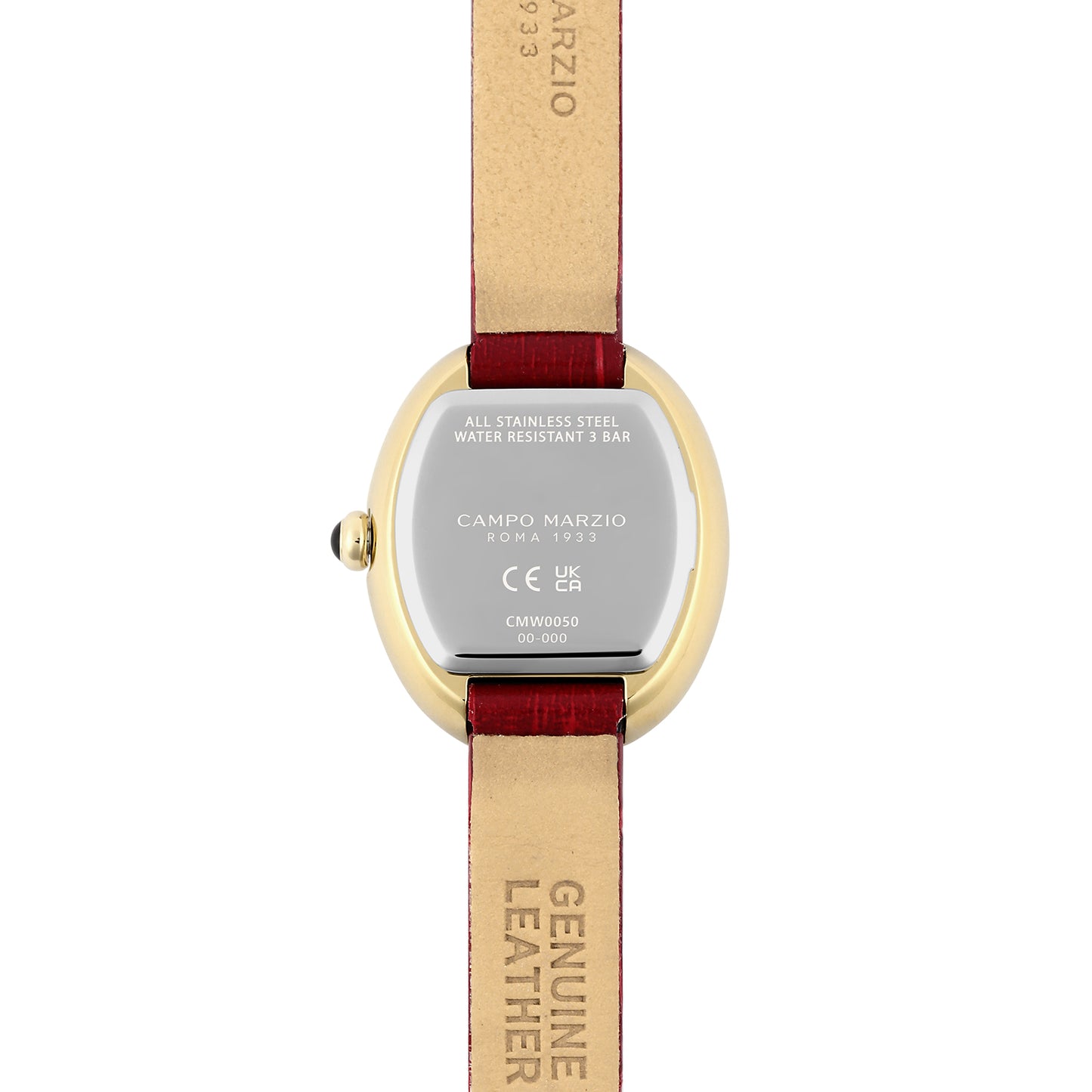 Style and functionality combine in this classic timepiece. Featuring a stunning oval gold case and a sleek white dial, this watch elevates any outfit. The red crocodile embossed leather strap adds a touch of luxury, while the durable mineral crystal protects the watch face. It's the perfect accessory for any occasion and makes a statement of elegance and sophistication.